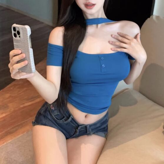 ファーデザインホルターネックトップス ・12698