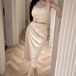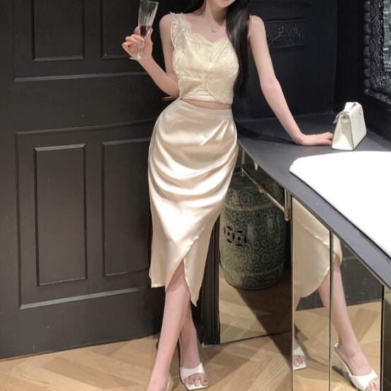 【2点セット】3色/フーディーカシュクールトップス+マーメイドスカート ・12506