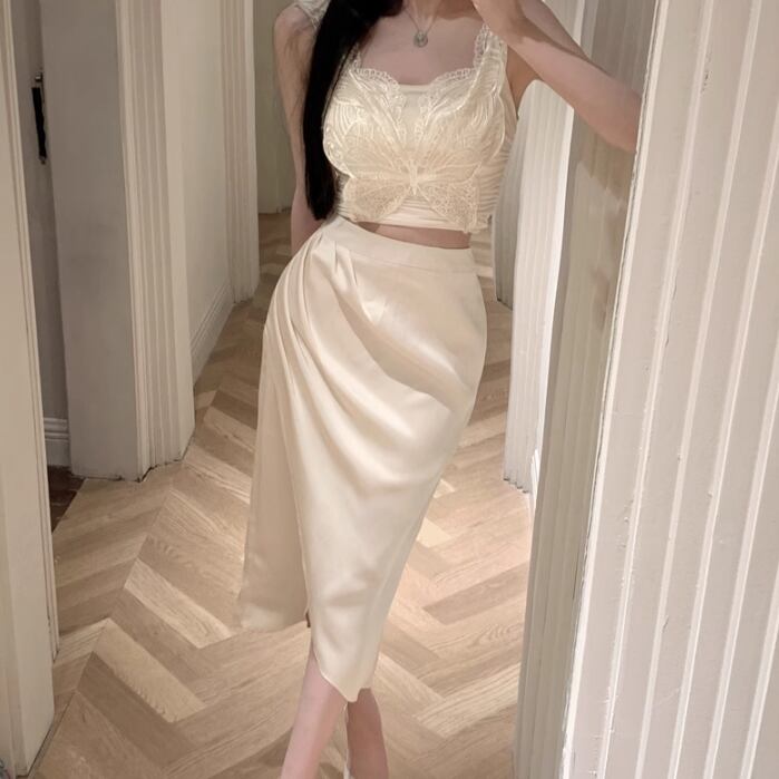 【3点セット】レースブラレット+オフショルトップス+レースヘムスカート ・12766