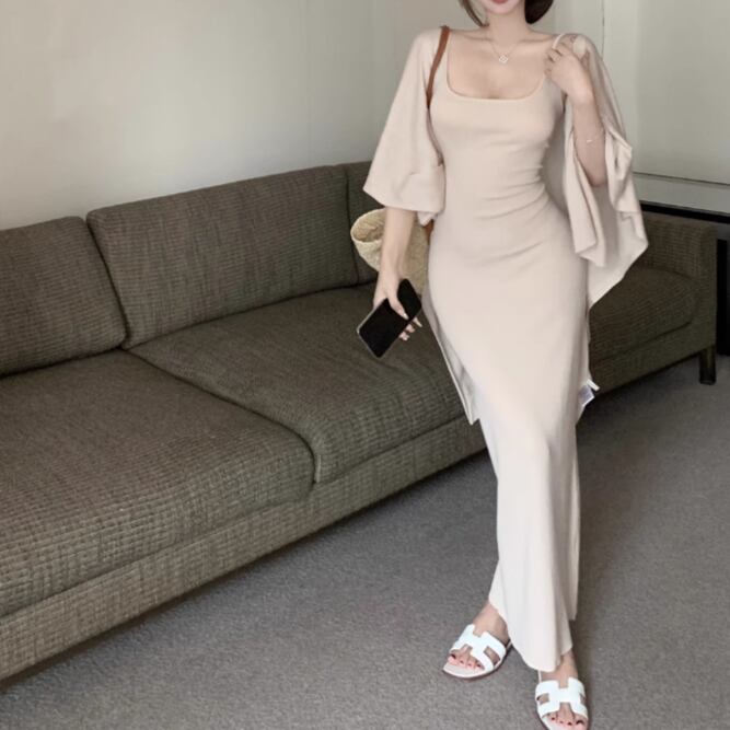 【2点セット】3色/フーディーカシュクールトップス+マーメイドスカート ・12506