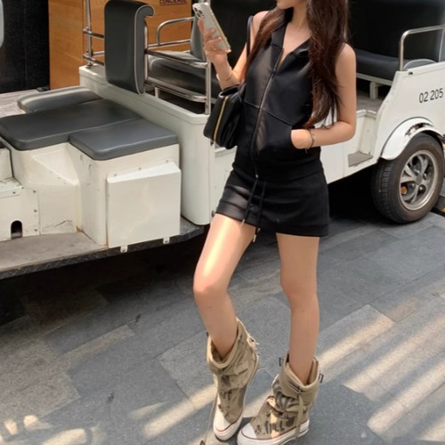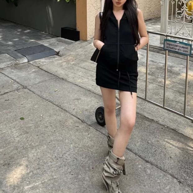 【2点セット】3色/フーディーカシュクールトップス+マーメイドスカート ・12506
