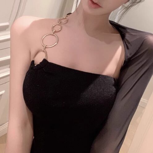 4色/シアースリーブストラップショルダーワンピ ・12626