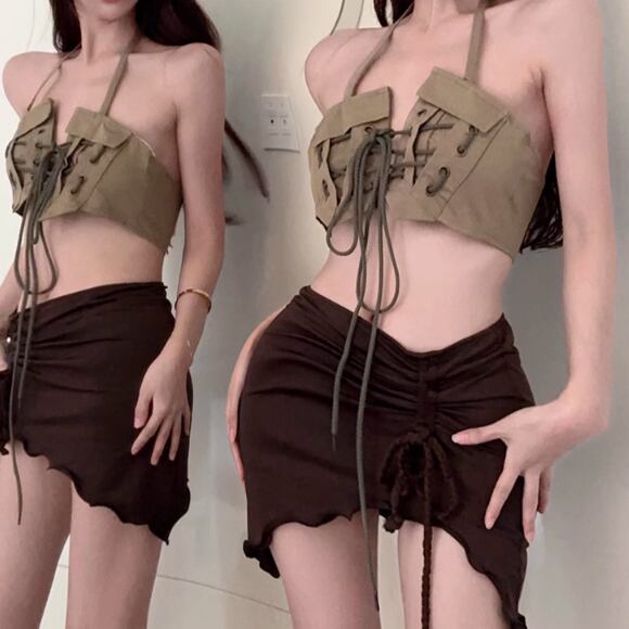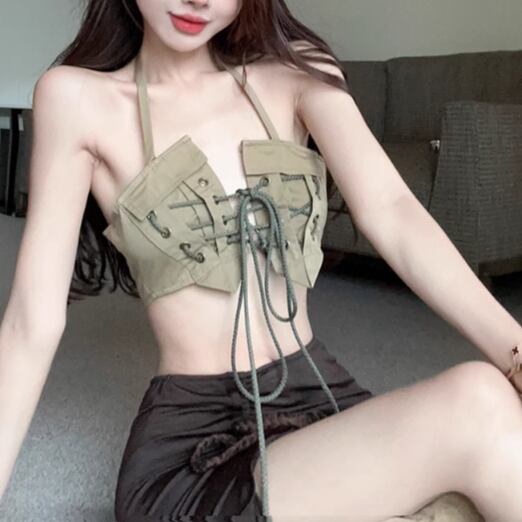 バックレースアップフリルキャミ ・13161