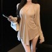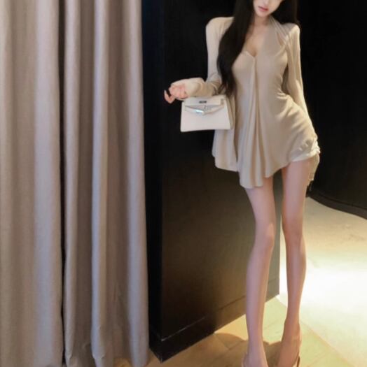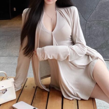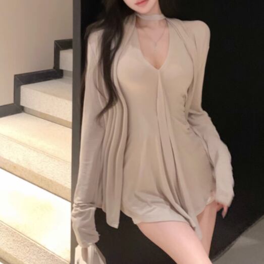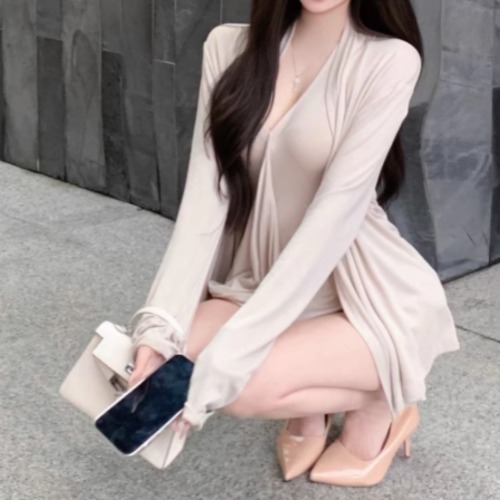 【2点セット】3色/フーディーカシュクールトップス+マーメイドスカート ・12506