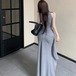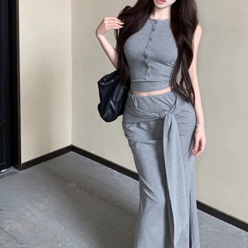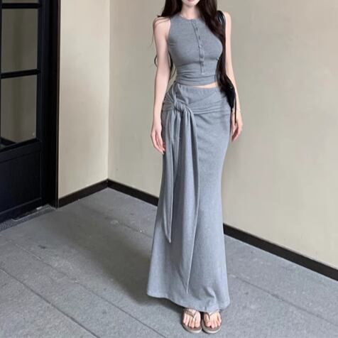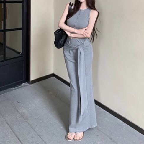 【2点セット】3色/フーディーカシュクールトップス+マーメイドスカート ・12506