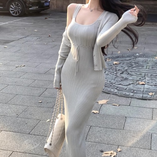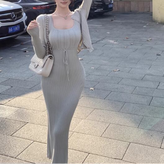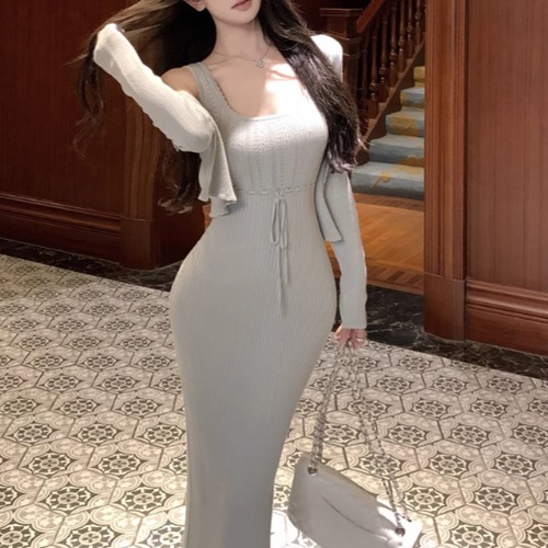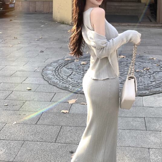 【2点セット】3色/フーディーカシュクールトップス+マーメイドスカート ・12506