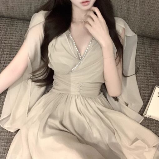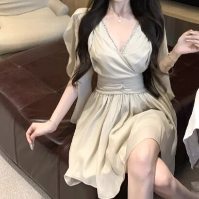 4色/シアースリーブストラップショルダーワンピ ・12626