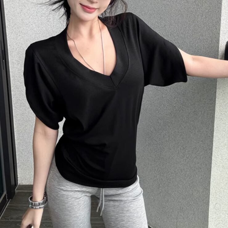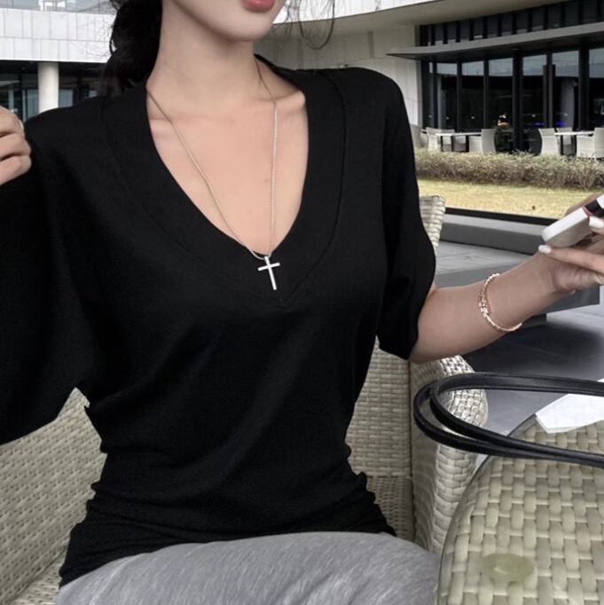 5色/オープンショルダードレープネックトップス ・12357