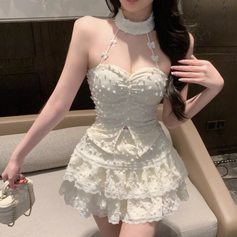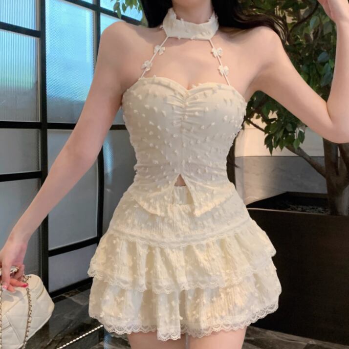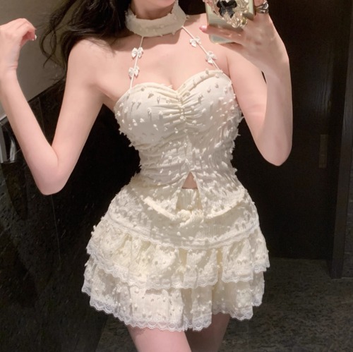 【3点セット】レースブラレット+オフショルトップス+レースヘムスカート ・12766