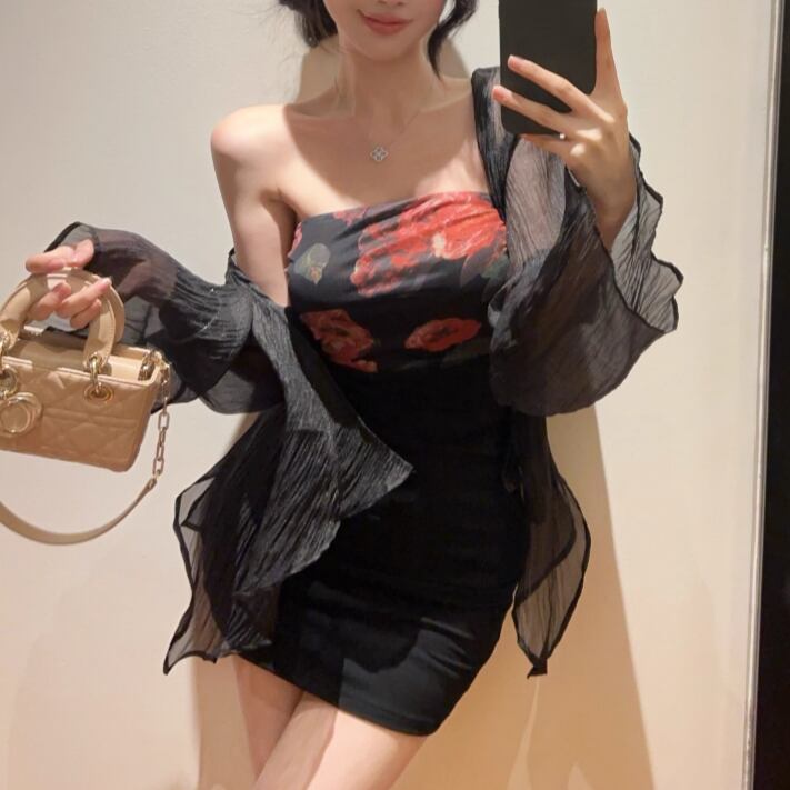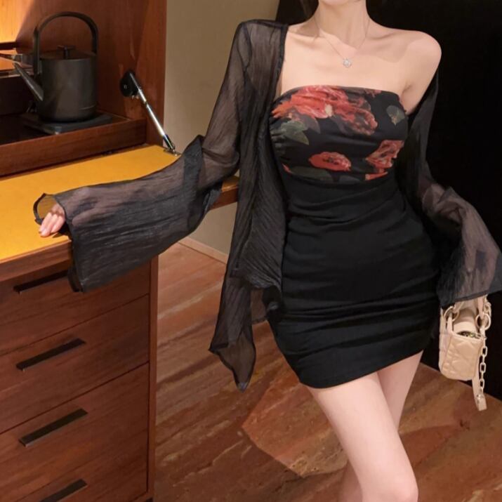 【2点セット】3色/フーディーカシュクールトップス+マーメイドスカート ・12506
