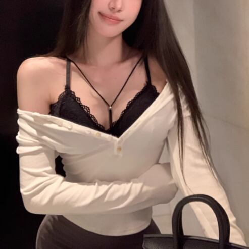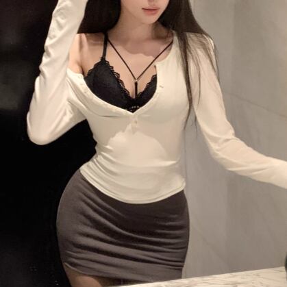 【3点セット】レースブラレット+オフショルトップス+レースヘムスカート ・12766