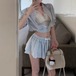 【2点セット】3色/フーディーカシュクールトップス+マーメイドスカート ・12506