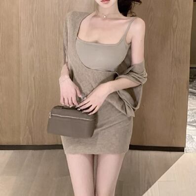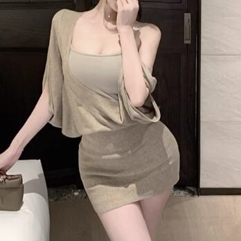 【2点セット】3色/フーディーカシュクールトップス+マーメイドスカート ・12506