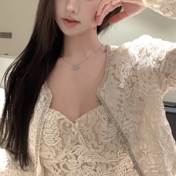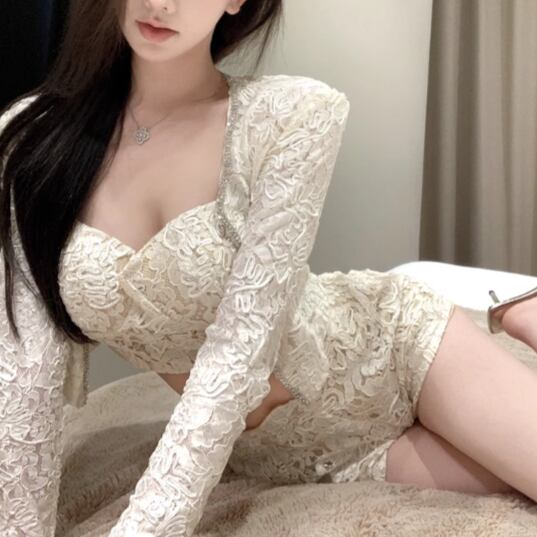 【3点セット】レースブラレット+オフショルトップス+レースヘムスカート ・12766