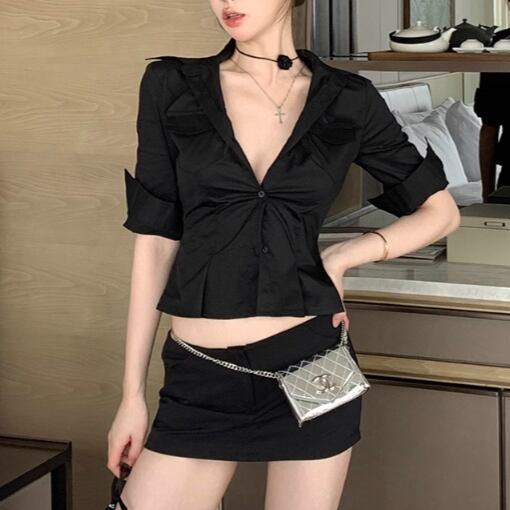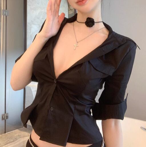 ウエストWボタンアシメショルダーブラウス ・13137