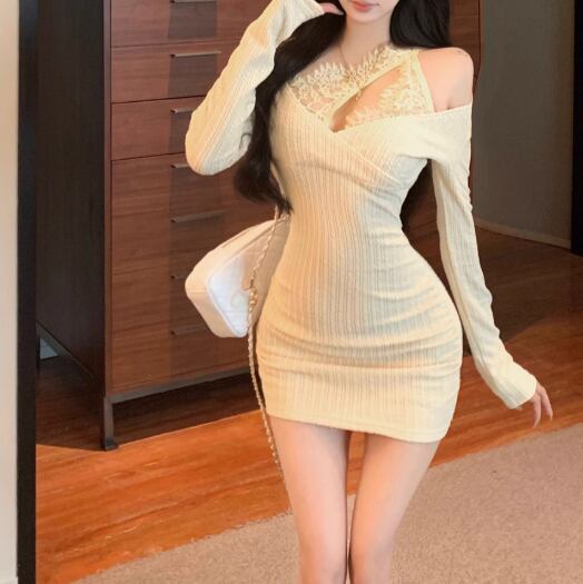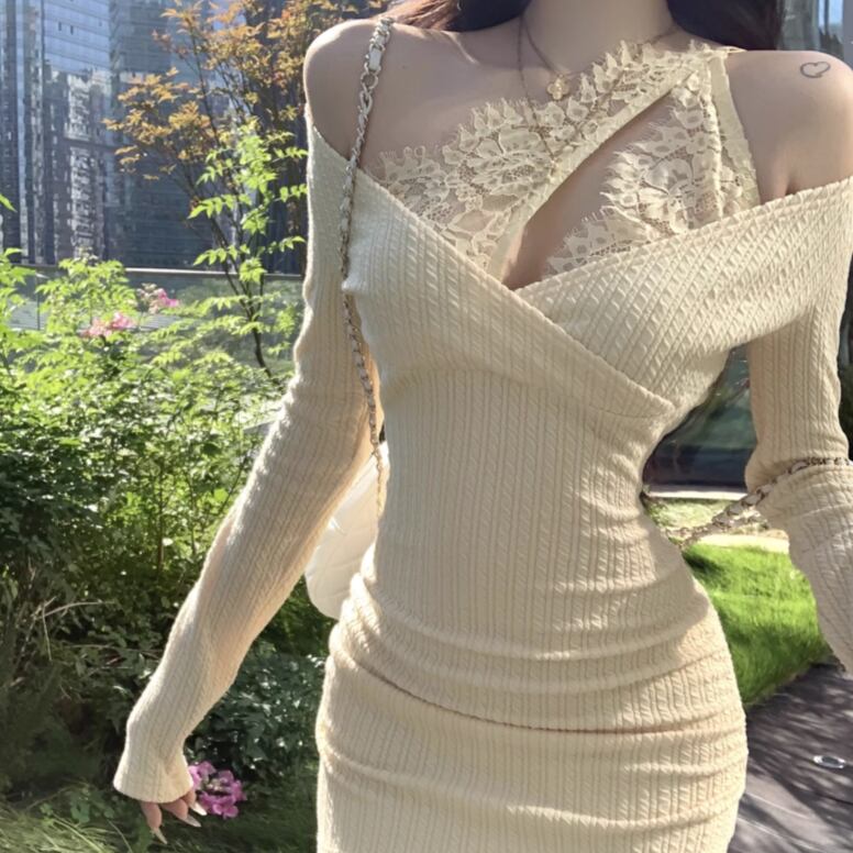 レースデザインワンショルワンピ ・12621