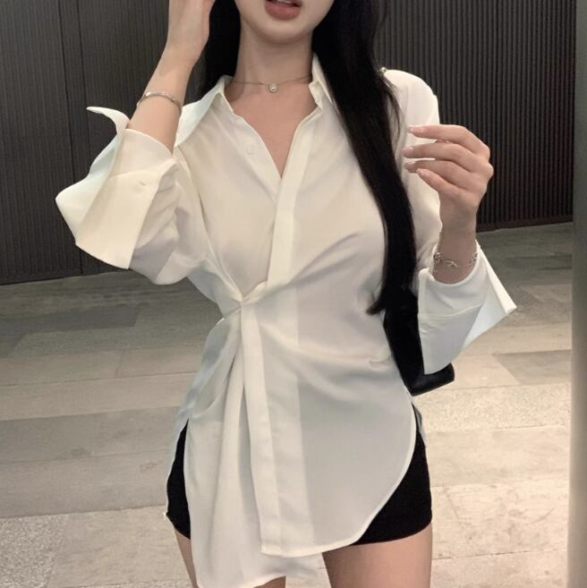 ウエストWボタンアシメショルダーブラウス ・13137