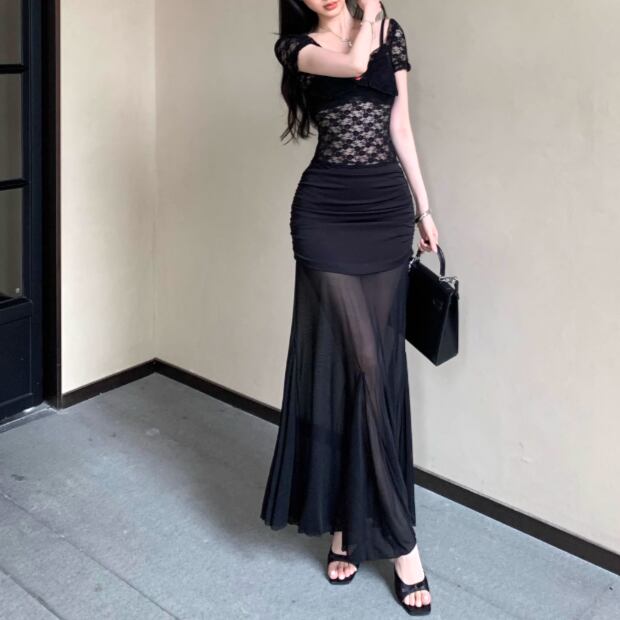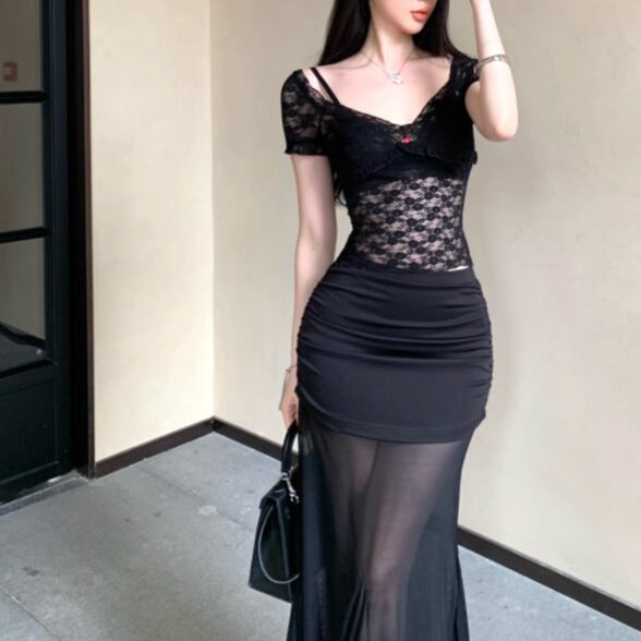 【3点セット】レースブラレット+オフショルトップス+レースヘムスカート ・12766