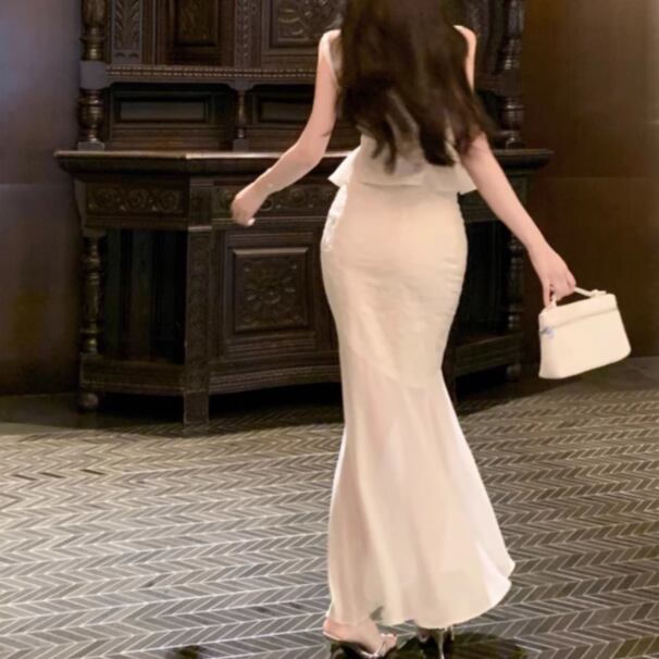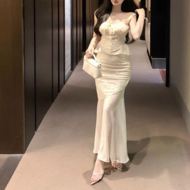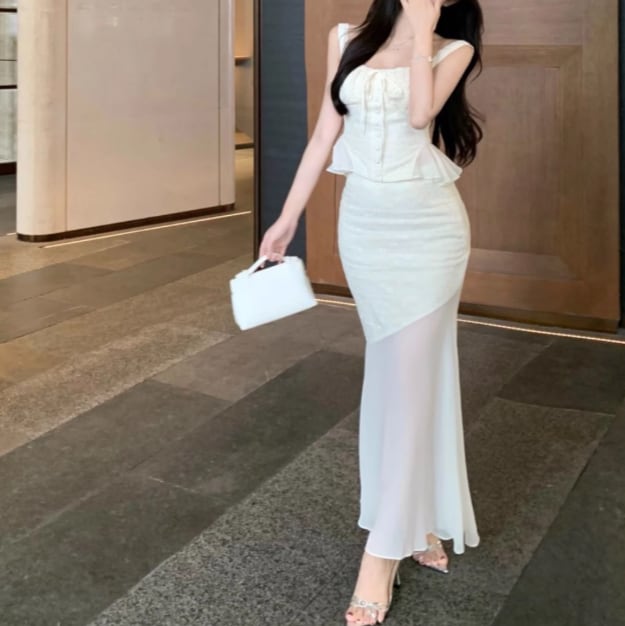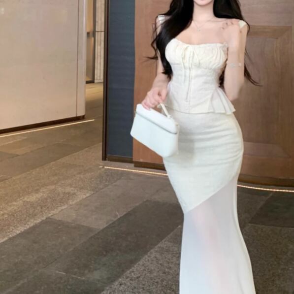 【2点セット】3色/フーディーカシュクールトップス+マーメイドスカート ・12506