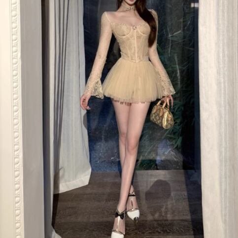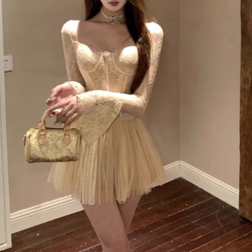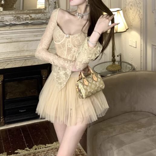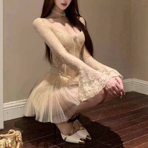 【3点セット】レースブラレット+オフショルトップス+レースヘムスカート ・12766