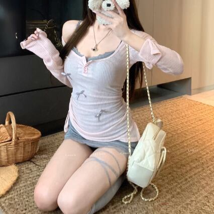 【3点セット】レースブラレット+オフショルトップス+レースヘムスカート ・12766