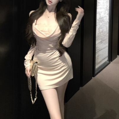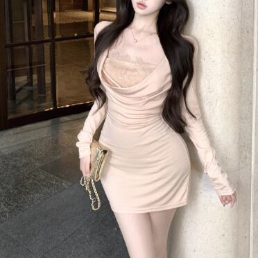 【2点セット】3色/フーディーカシュクールトップス+マーメイドスカート ・12506