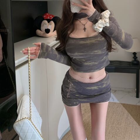 【2点セット】3色/フーディーカシュクールトップス+マーメイドスカート ・12506
