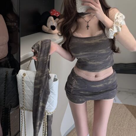 ▽Instagram「新作情報配信中」 フォローお願いいたします。 https://www.instagram.com/rote_roze.official/ ▼カラー グレー(画像2枚目) 迷彩(画像3枚目) ▼サイズ [ フリーサイズ ] キャミ:着丈21cm バスト72cm ストラップ34cm スカート:着丈24cm ウエスト63cm ヒップ78cm トップス:着丈22cm 袖丈73cm ※1-3cm程度の誤差がある場合がございます。予めご了承ください。 ▼シーズン 春,夏 ▼同じカテゴリの商品はこちら https://www.roteroze.com/categories/4991976 ▽お支払い方法 ・クレジットカード決済 ・キャリア決済 (docomo/au/Softbank/Y!mobile) ・後払い決済 (商品お届け後コンビニ払いなど) ▽注意点 ※こちらの商品は決済から10日-3週間前後でのお届けとなります。 ※配送日時指定等に関しては、ご指定できないことご了承くださいませ。 ※できる限り早くお届けできるように手配させて頂きます。 ※検品はしておりますが、もし届いた商品に不備がありましたら、誠実に対応させていただきます。 商品ID:RR010577