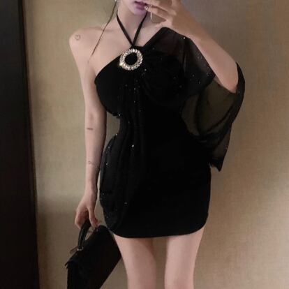 4色/シアースリーブストラップショルダーワンピ ・12626