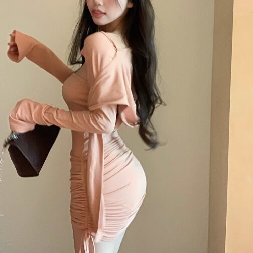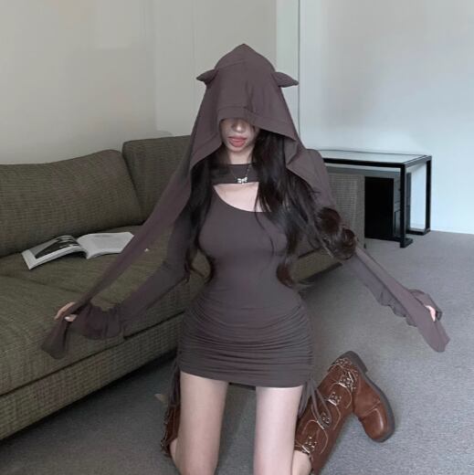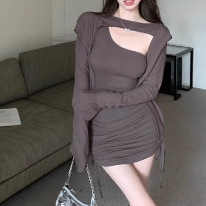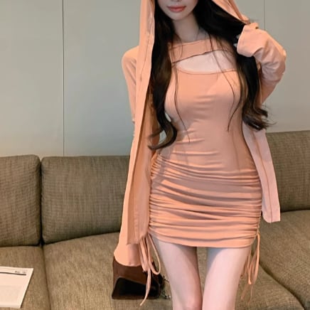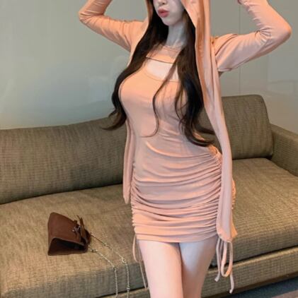 【2点セット】3色/フーディーカシュクールトップス+マーメイドスカート ・12506