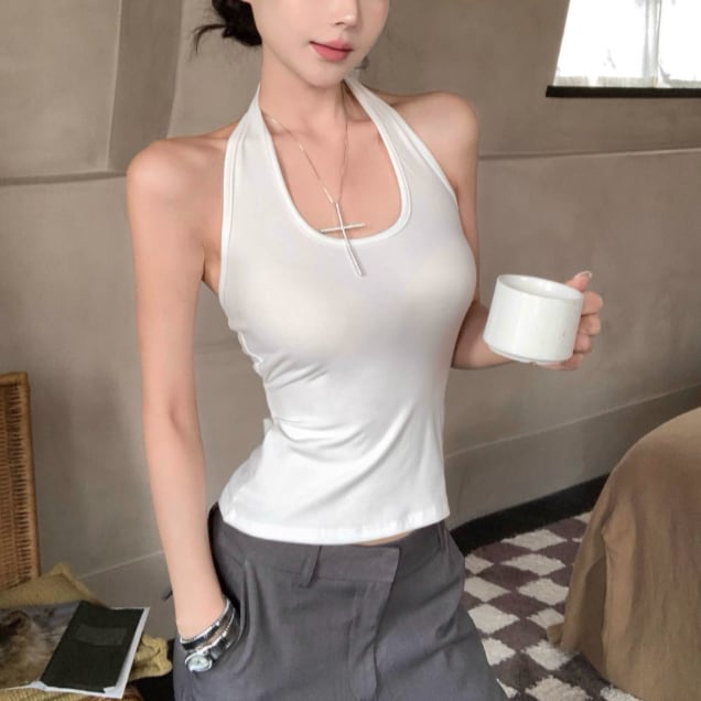 ファーデザインホルターネックトップス ・12698