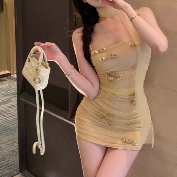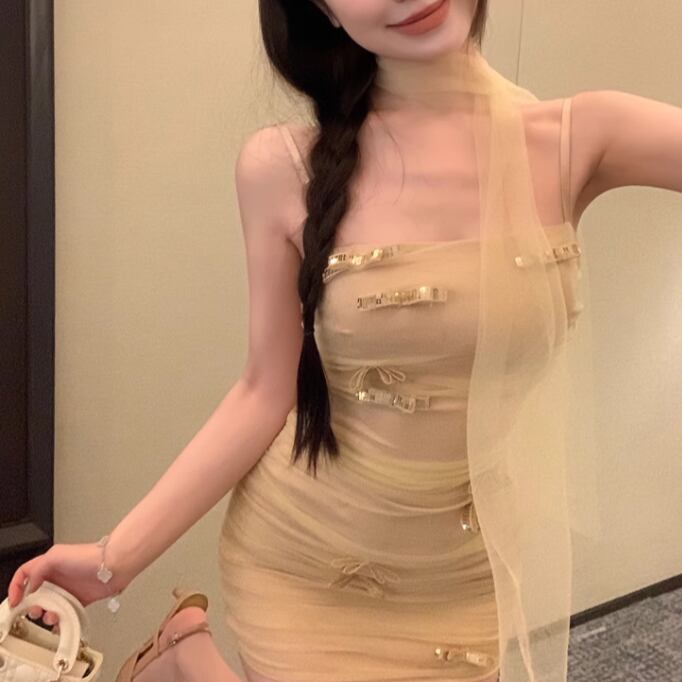 4色/シアースリーブストラップショルダーワンピ ・12626