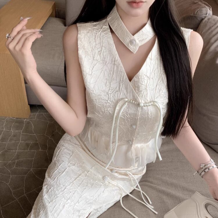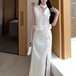 【2点セット】3色/フーディーカシュクールトップス+マーメイドスカート ・12506