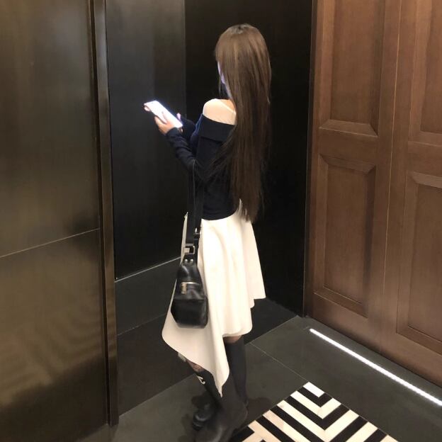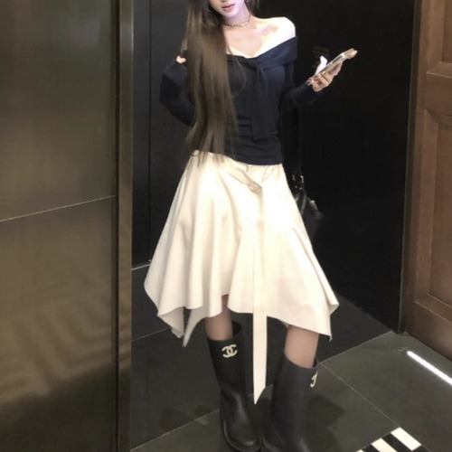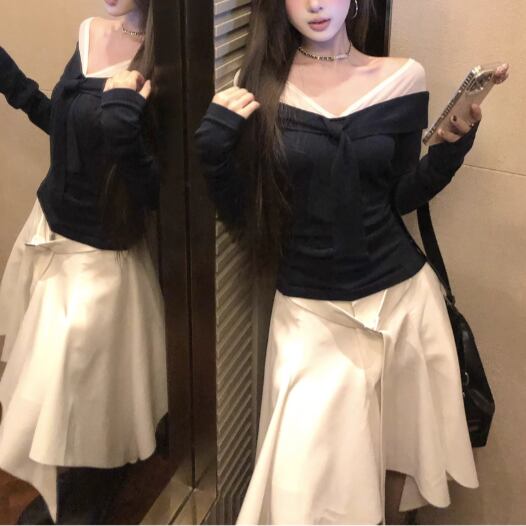【2点セット】3色/フーディーカシュクールトップス+マーメイドスカート ・12506