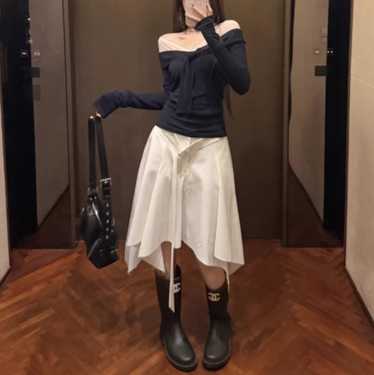【3点セット】レースブラレット+オフショルトップス+レースヘムスカート ・12766
