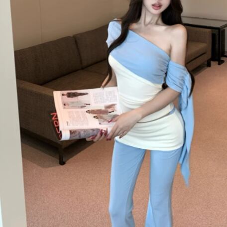 【2点セット】3色/フーディーカシュクールトップス+マーメイドスカート ・12506