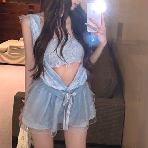 【3点セット】レースブラレット+オフショルトップス+レースヘムスカート ・12766