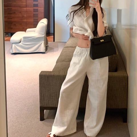 ▽Instagram「新作情報配信中」 フォローお願いいたします。 https://www.instagram.com/rote_roze.official/ ▼サイズ [ Sサイズ ] ブラウス:着丈70cm バスト106cm 肩幅42cm 袖丈27cm パンツ:着丈100cm ウエスト60cm ヒップ108cm [ Mサイズ ] ブラウス:着丈71cm バスト110cm 肩幅43cm 袖丈28cm パンツ:着丈101cm ウエスト64cm ヒップ112cm ※1-3cm程度の誤差がある場合がございます。予めご了承ください。 ▼シーズン 春,夏 ▼同じカテゴリの商品はこちら https://www.roteroze.com/categories/4991976 ▽お支払い方法 ・クレジットカード決済 ・キャリア決済 (docomo/au/Softbank/Y!mobile) ・後払い決済 (商品お届け後コンビニ払いなど) ▽注意点 ※こちらの商品は決済から10日-3週間前後でのお届けとなります。 ※配送日時指定等に関しては、ご指定できないことご了承くださいませ。 ※できる限り早くお届けできるように手配させて頂きます。 ※検品はしておりますが、もし届いた商品に不備がありましたら、誠実に対応させていただきます。 商品ID:RR010799