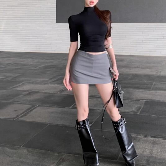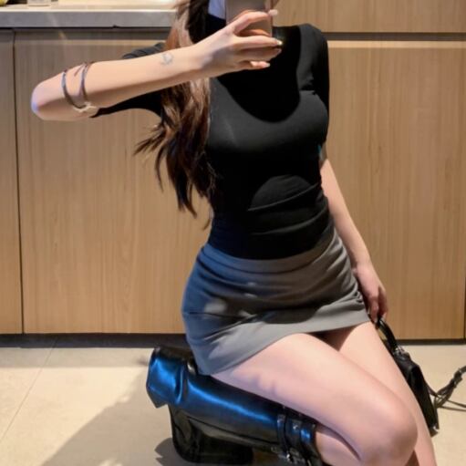 【2点セット】3色/フーディーカシュクールトップス+マーメイドスカート ・12506