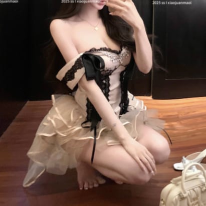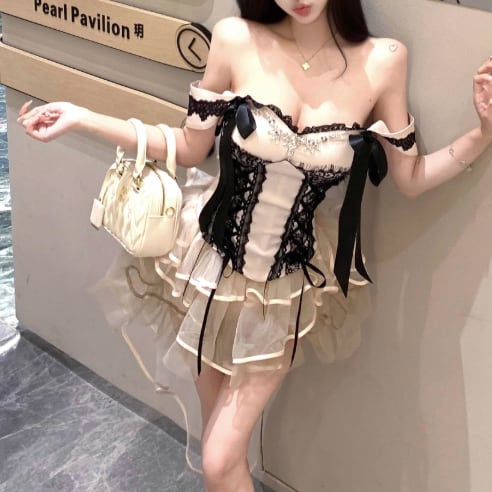 【3点セット】レースブラレット+オフショルトップス+レースヘムスカート ・12766