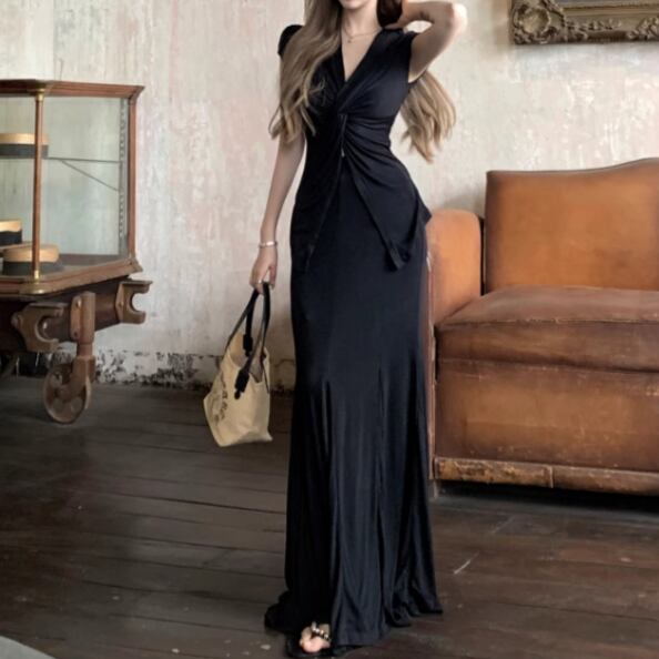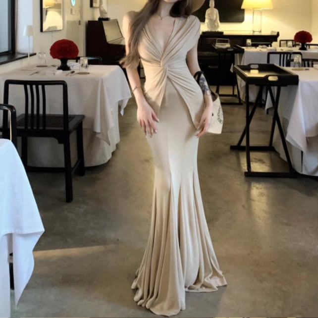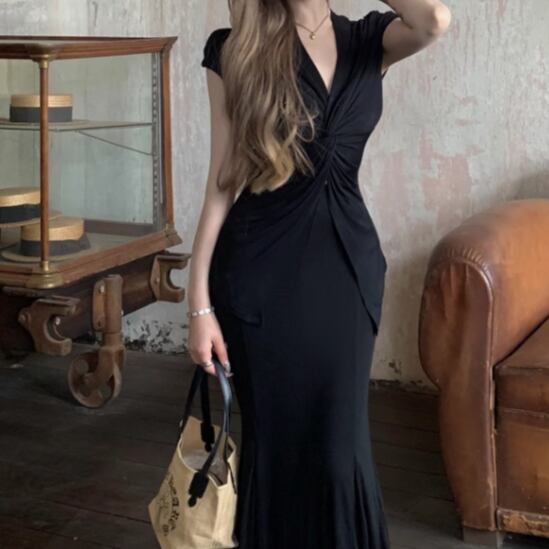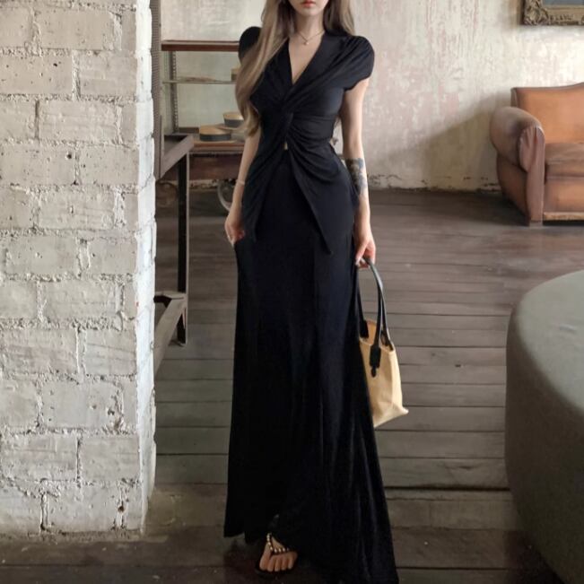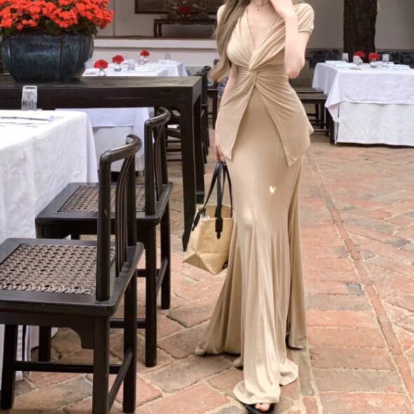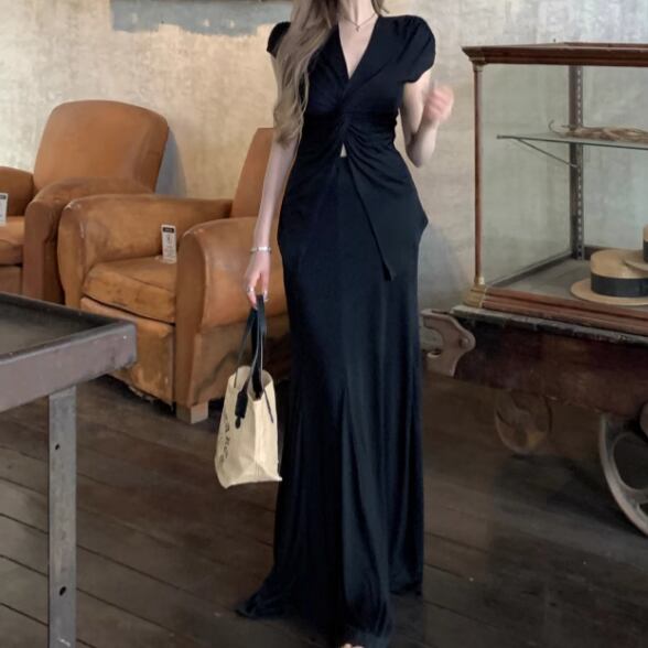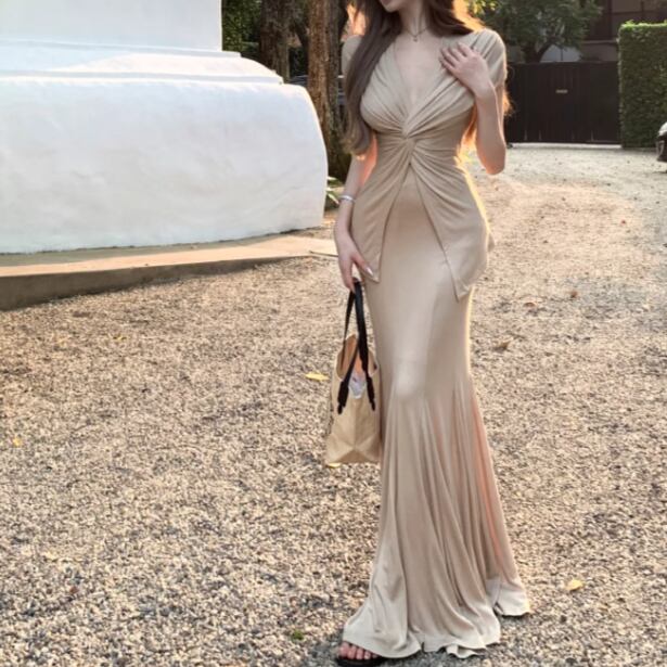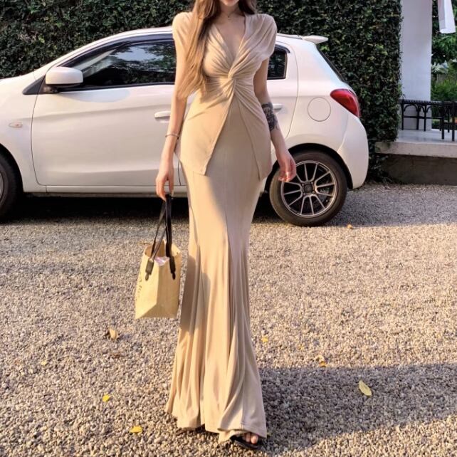 【2点セット】3色/フーディーカシュクールトップス+マーメイドスカート ・12506