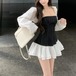 【3点セット】レースブラレット+オフショルトップス+レースヘムスカート ・12766