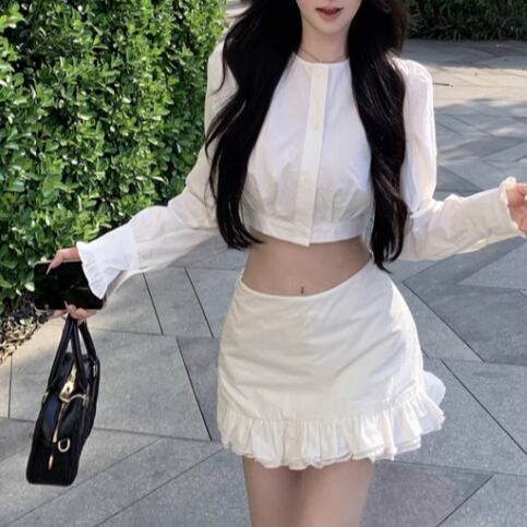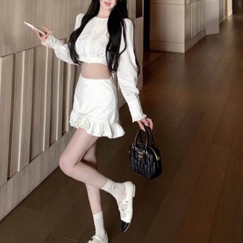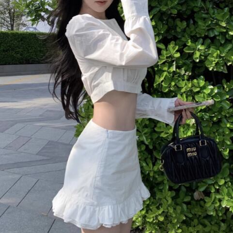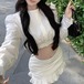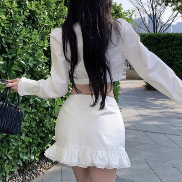【2点セット】3色/フーディーカシュクールトップス+マーメイドスカート ・12506