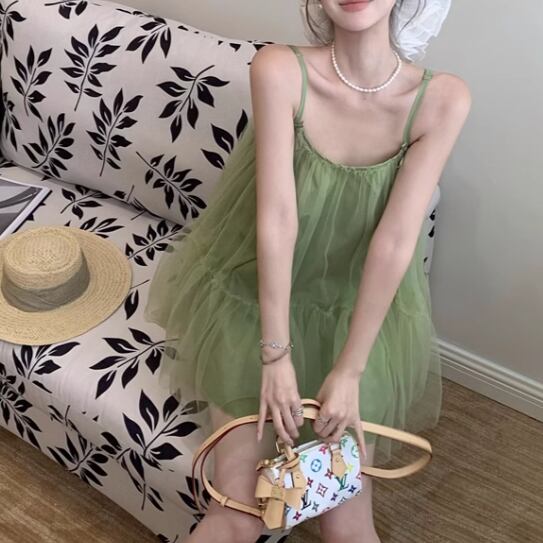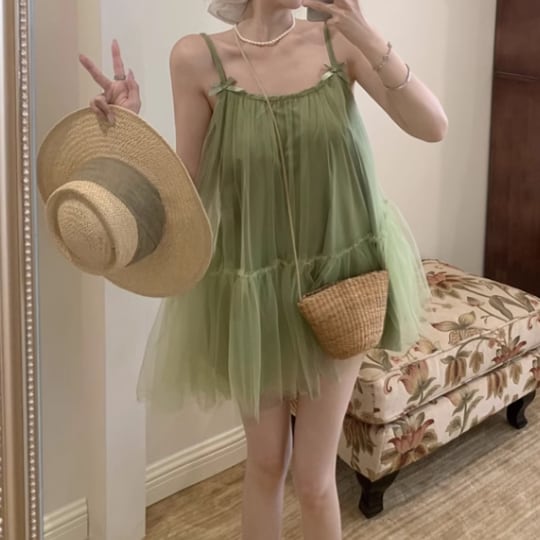 4色/シアースリーブストラップショルダーワンピ ・12626