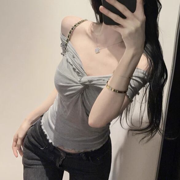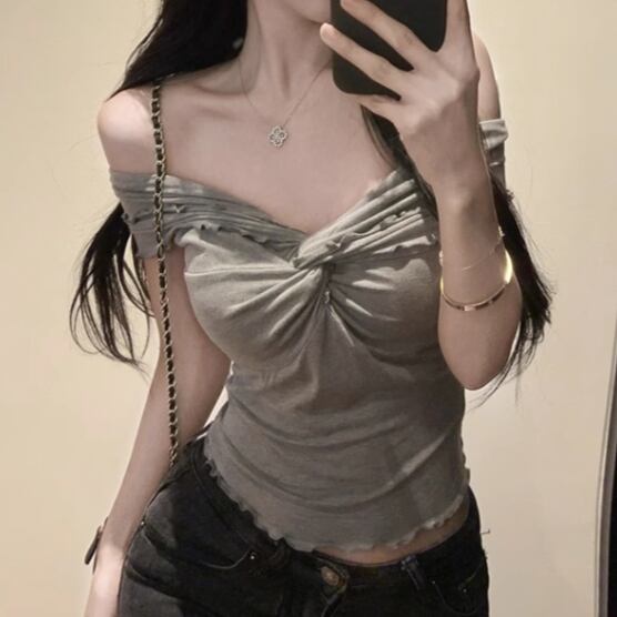 5色/オープンショルダードレープネックトップス ・12357