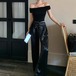 【2点セット】3色/フーディーカシュクールトップス+マーメイドスカート ・12506