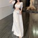 【2点セット】3色/フーディーカシュクールトップス+マーメイドスカート ・12506