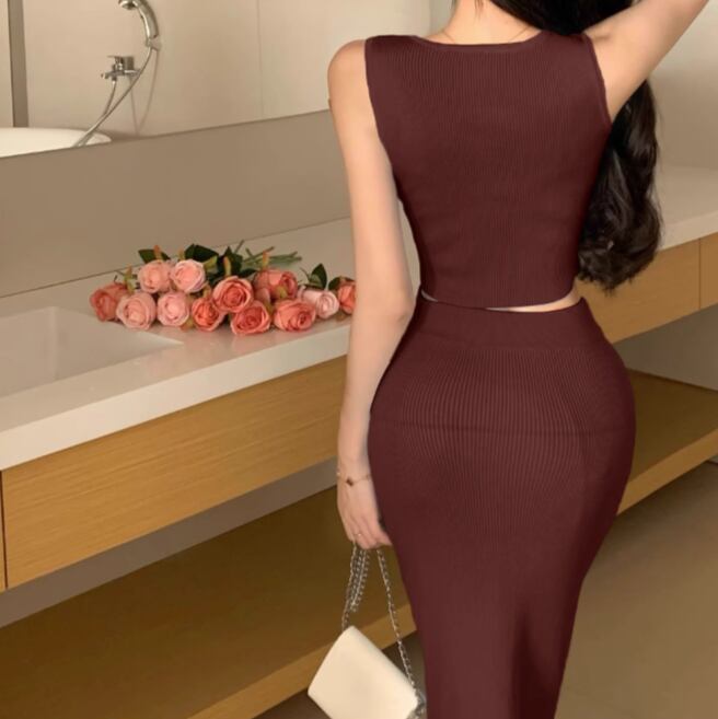 【2点セット】3色/フーディーカシュクールトップス+マーメイドスカート ・12506