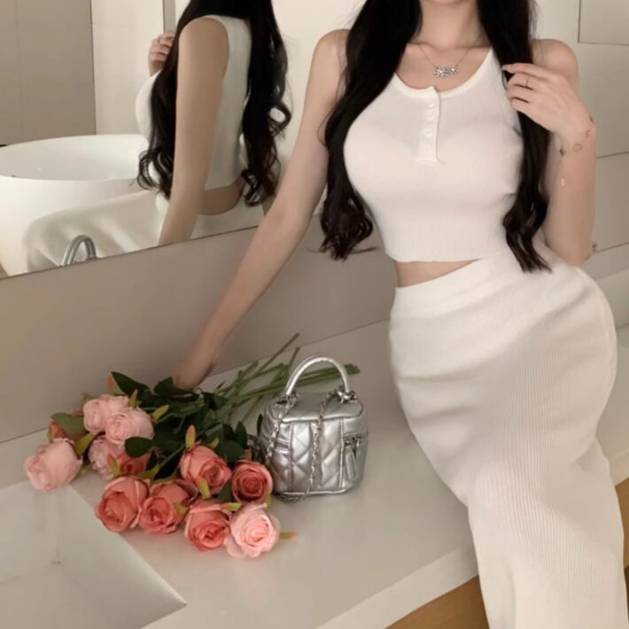 ▽Instagram「新作情報配信中」 フォローお願いいたします。 https://www.instagram.com/rote_roze.official/ ▼カラー ホワイト(画像2枚目) ブルー(画像3枚目) ブラック(画像4枚目) パープル(画像5枚目) ブラウン(画像6枚目) ▼サイズ [ フリーサイズ ] トップス:着丈40cm バスト90cm 肩幅28cm スカート:着丈77cm ウエスト60-106cm ※1-3cm程度の誤差がある場合がございます。予めご了承ください。 ▼シーズン 春,夏 ▼同じカテゴリの商品はこちら https://www.roteroze.com/categories/4991976 ▽お支払い方法 ・クレジットカード決済 ・キャリア決済 (docomo/au/Softbank/Y!mobile) ・後払い決済 (商品お届け後コンビニ払いなど) ▽注意点 ※こちらの商品は決済から10日-3週間前後でのお届けとなります。 ※配送日時指定等に関しては、ご指定できないことご了承くださいませ。 ※できる限り早くお届けできるように手配させて頂きます。 ※検品はしておりますが、もし届いた商品に不備がありましたら、誠実に対応させていただきます。 商品ID:RR010820