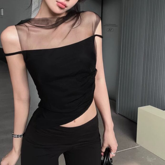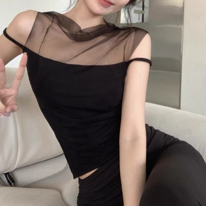 5色/オープンショルダードレープネックトップス ・12357